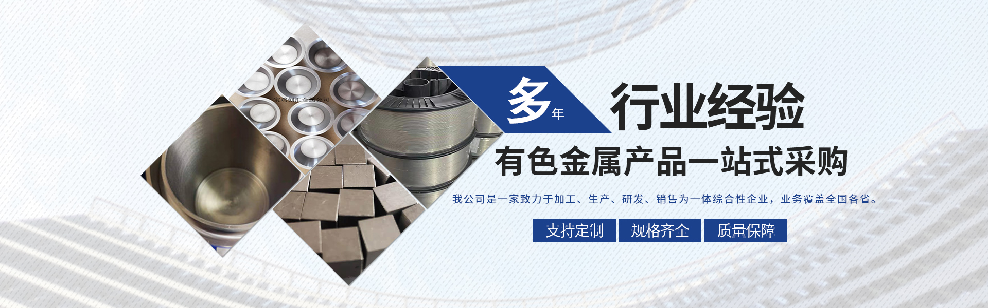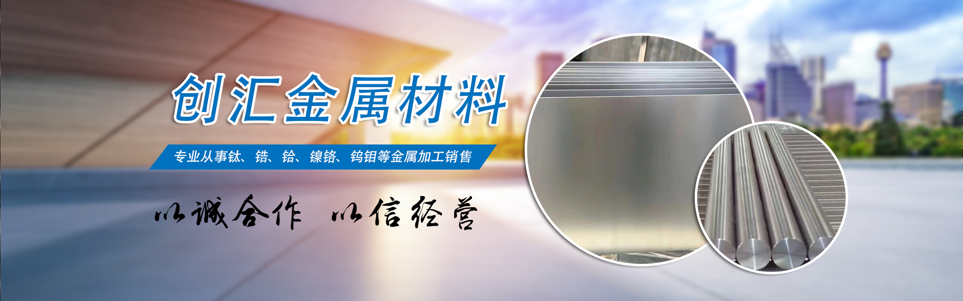 寶雞市創(chuàng)匯金屬材料有限公司,位于有“中國鈦谷”之稱寶雞寶鈦路南段,這里也是國家重點支持和扶持的有色金屬材料資源產業(yè)基地,我司專業(yè)從事鈦、鋯、鉿、鎳鉻、鎢鉬、鉭鈮、合金材料、復合材料,板、棒、絲、管、箔材等,設備制造,金屬制品機械加工銷售。